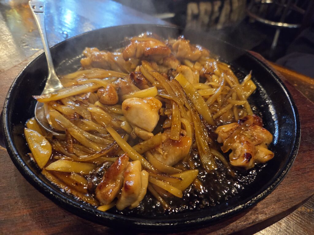 続いては、ジャガイモと玉ねぎ、鶏の炒め~!