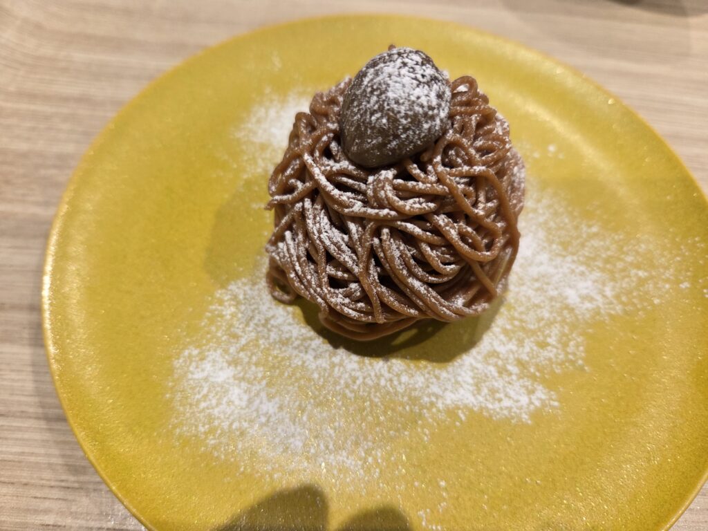 モンブランの茶色いところを目の前で絞ってかけてくれるんです✨