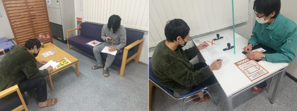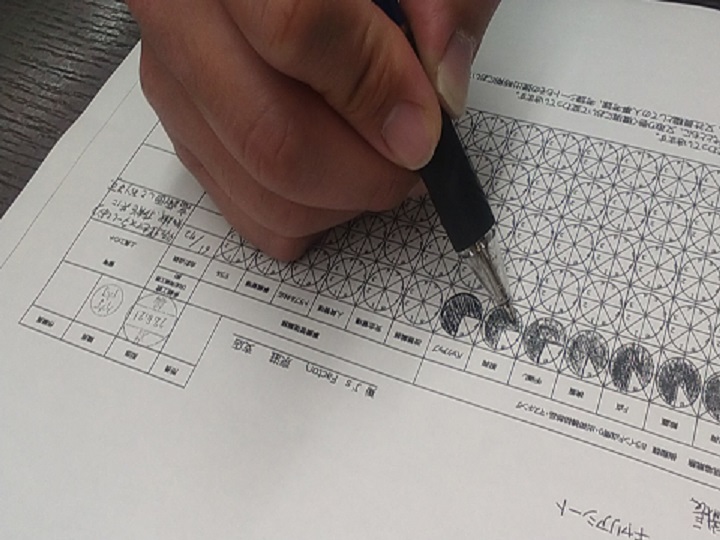 何をしているところでしょう?今回、1年の締めくくりということもあり自分の仕事、習熟の確認ということでキャリアシートの記入を一緒に実施しております。自分の仕事、習熟を自己評価して担当と現場の責任者の方と打ち合わせを実施し個々の評価を実施しております。写真に写っている2人はもう当社に入社して5年~6年経つベテランです!