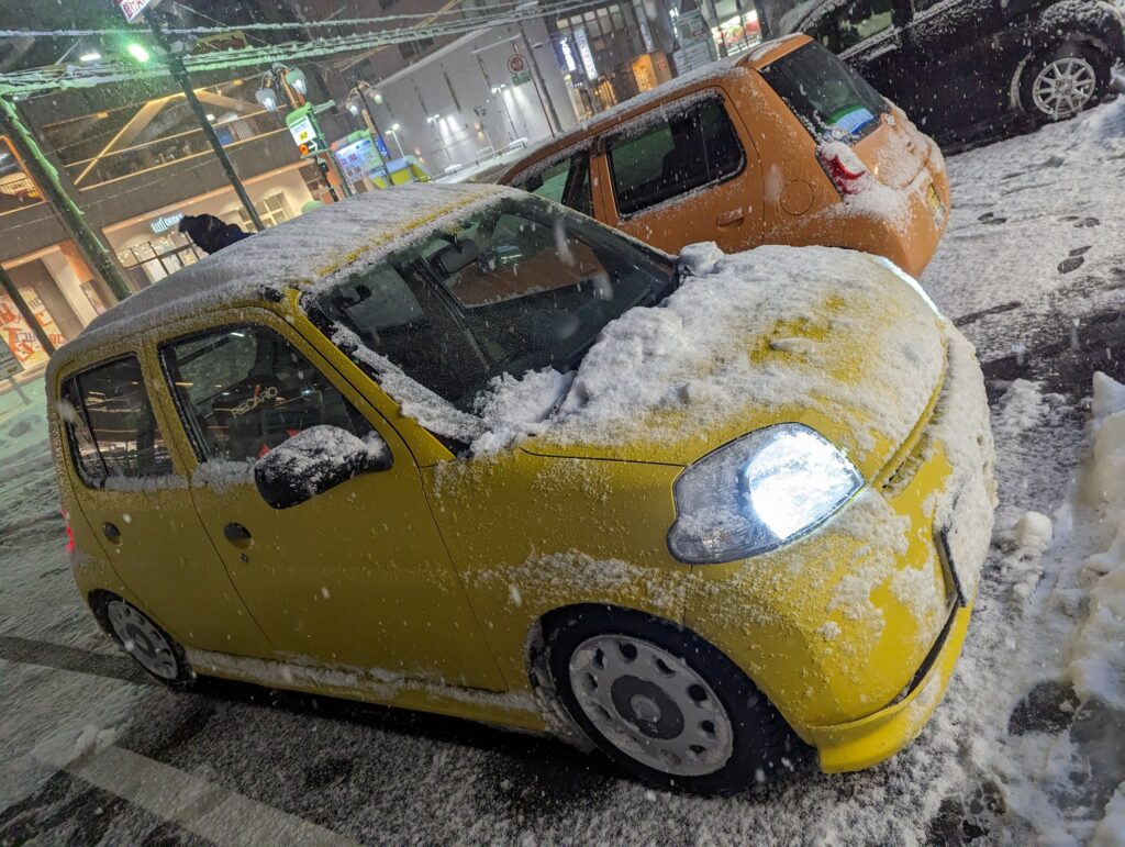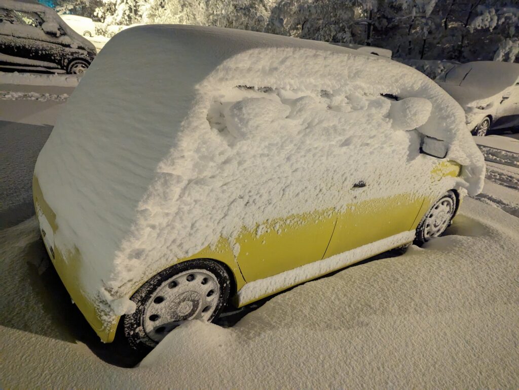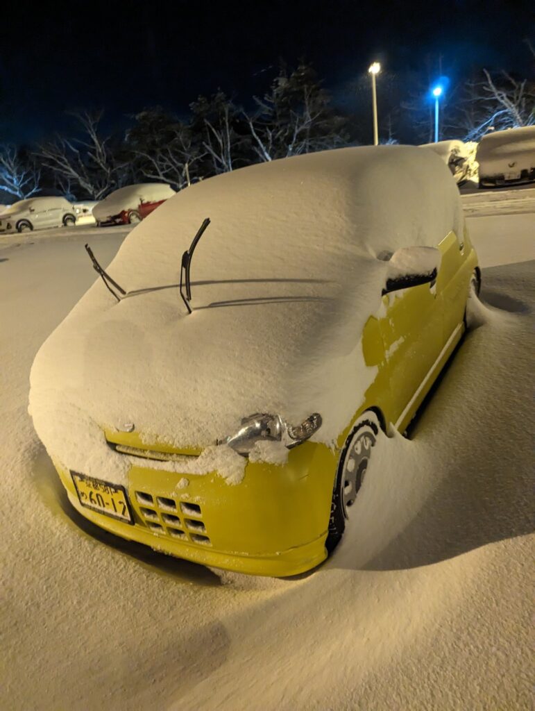 駐車場に戻るとご覧の雪見だいふく状態に…(笑)