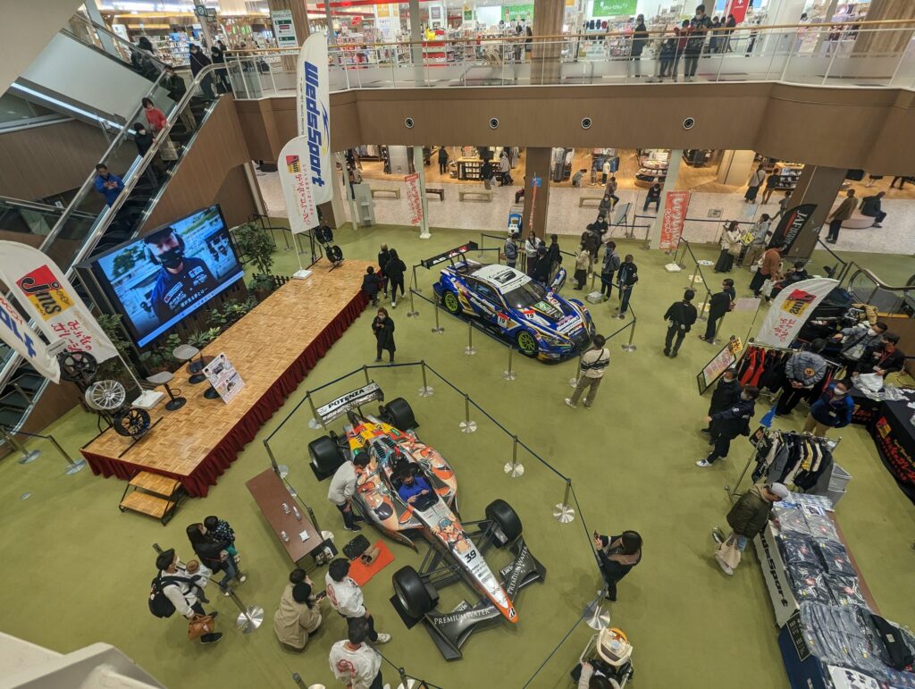ショッピングモールのど真ん中になんとレーシングカーが2台