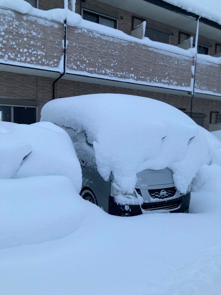 隣は当社社員の車ですが、完全に雪に埋まってますね。