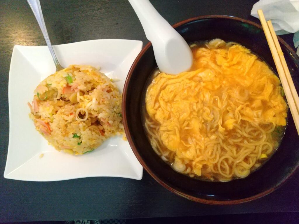 みんな同じ天津麺を注文!卵どれくらい使ってるのか?4.5個くらい使っていると思います。ふわふわの卵でおいしかったです!