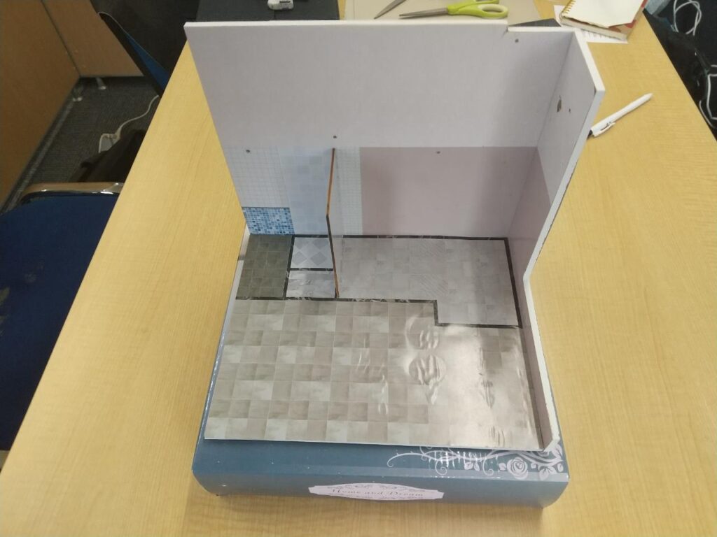 壁紙みたいなのをきれいに切って貼って簡単そうに見えて細かい作業でした。