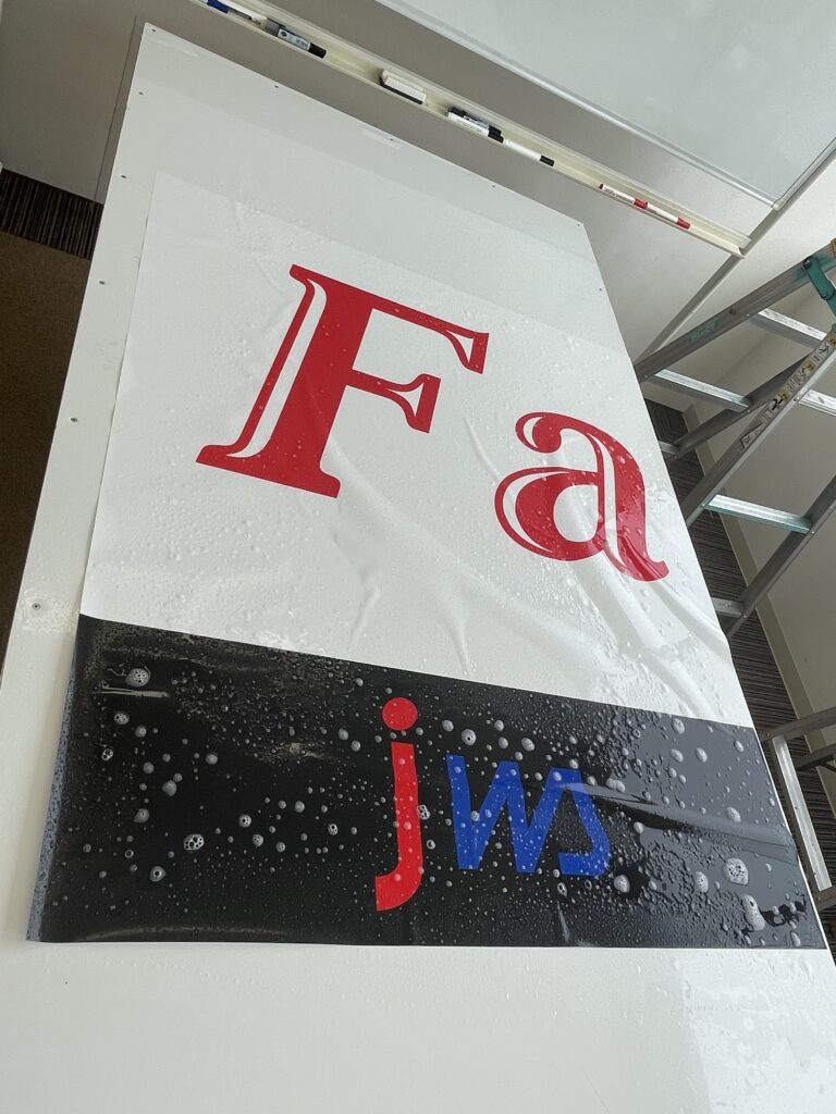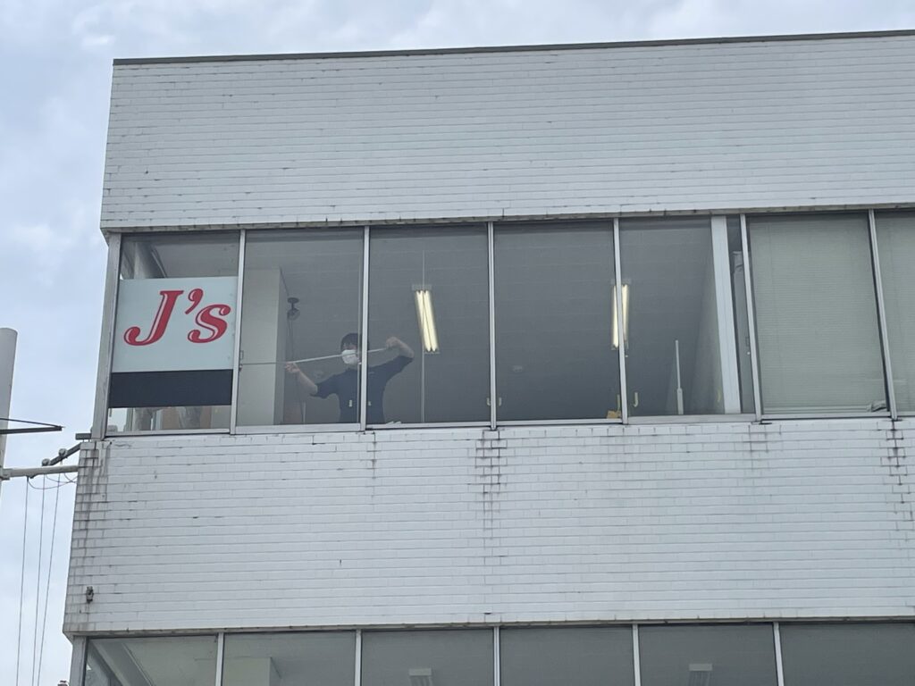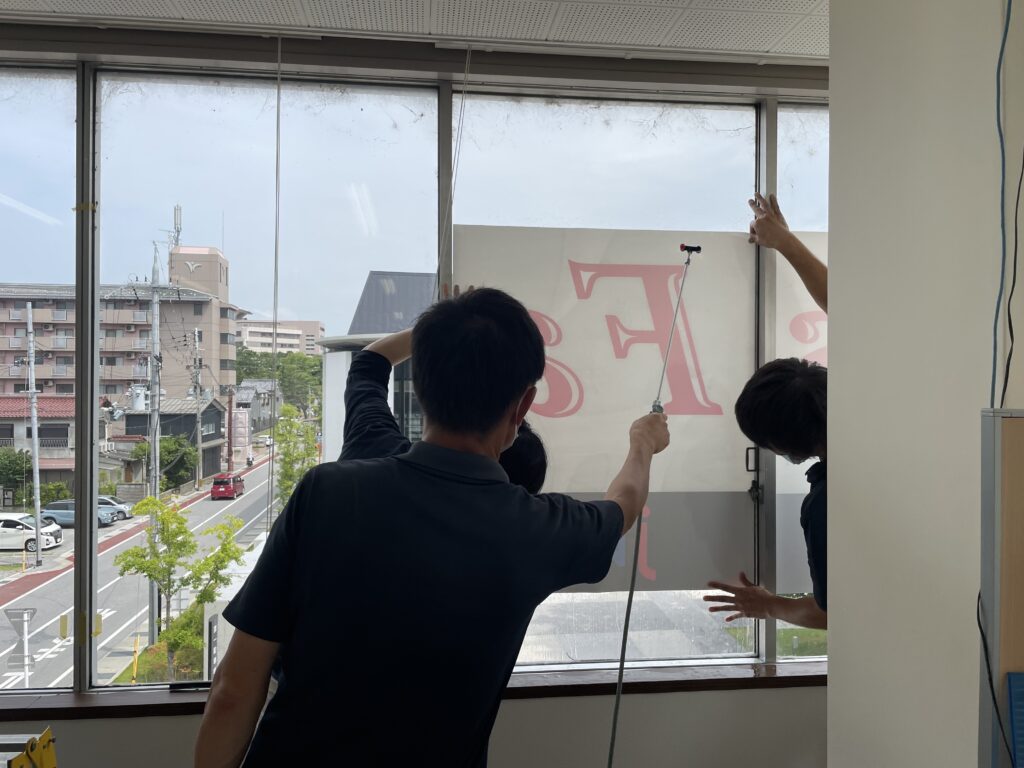 営業所の窓に社名看板をのせることになりました。