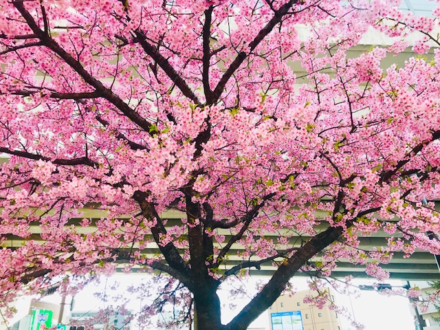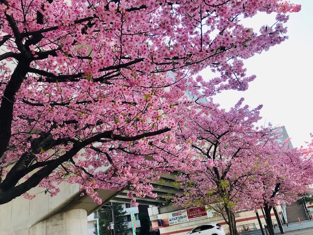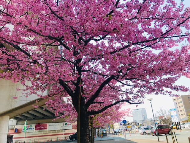 久留米市花畑駅付近にある河津桜(カワヅサクラ)が咲き始めました!!