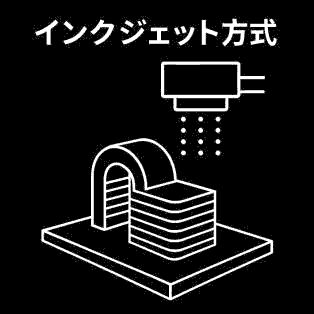 「インクジェット方式」と呼ばれるこの方式は、正式には「材料噴射法」