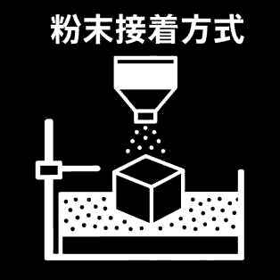 に切り出すことで立体物を作る3Dプリント方式です。接合には接着剤や超