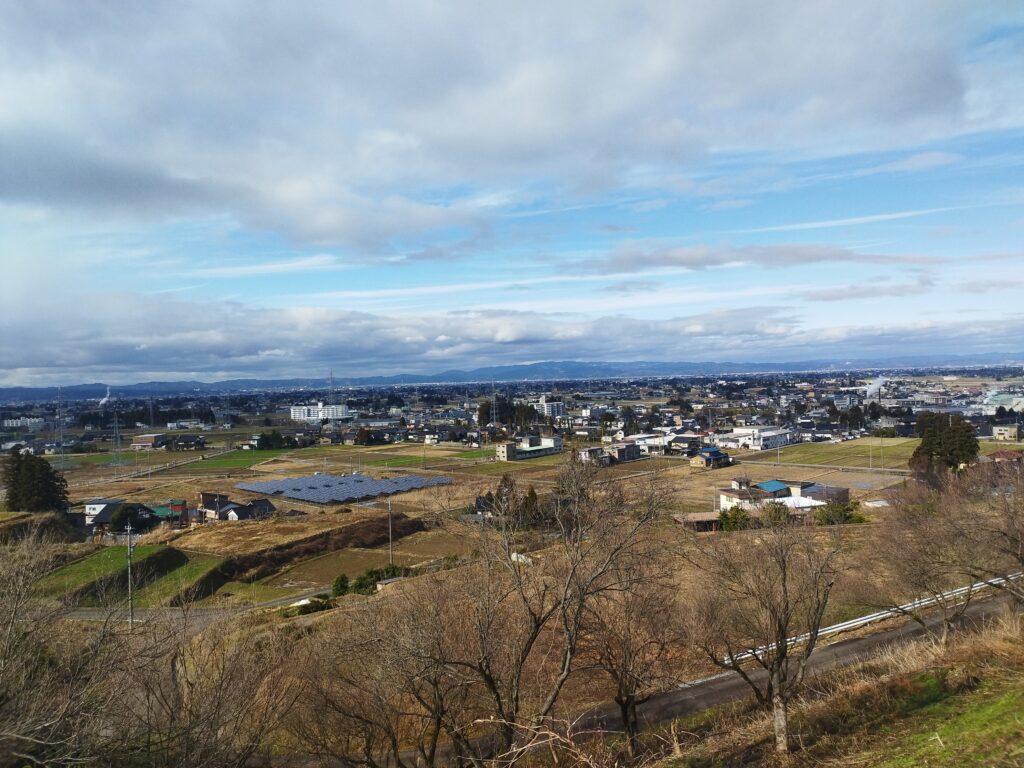 途中の山中で。散居村の街並み。