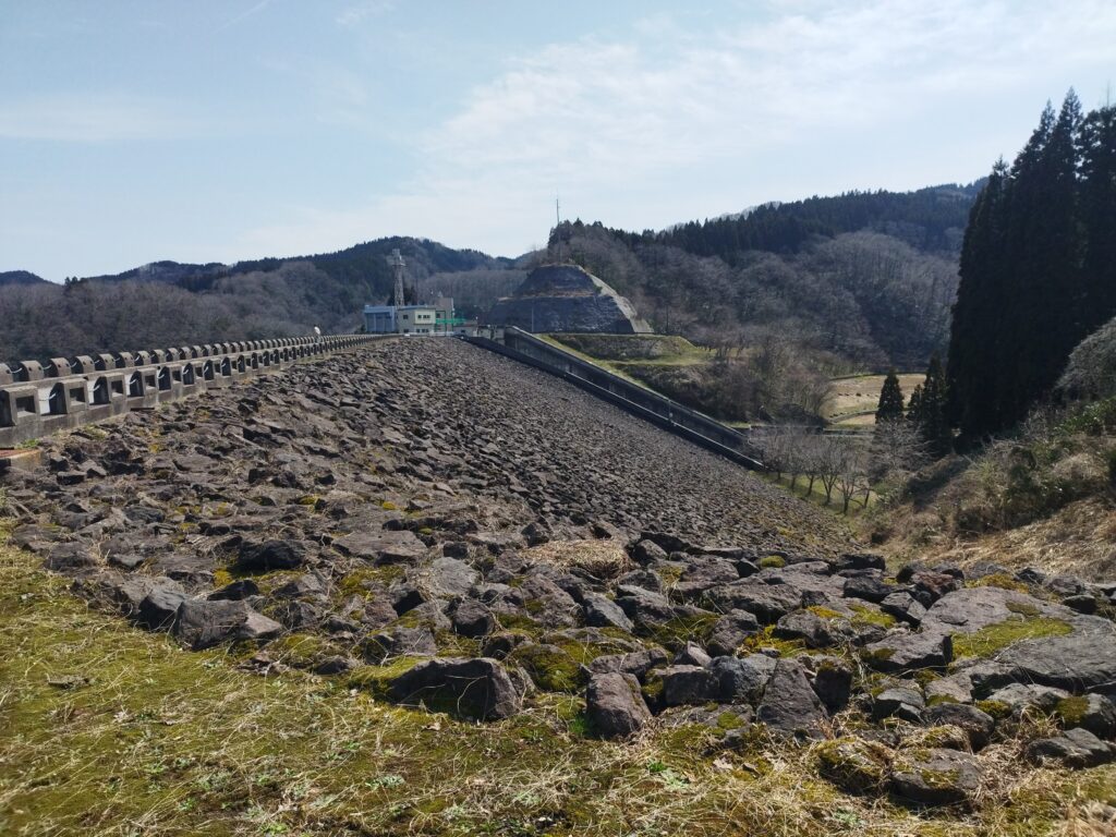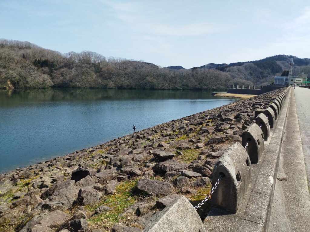 壁面には石が敷き詰められていて、ダム湖では釣り人が降りていっぱい魚を釣っていました。